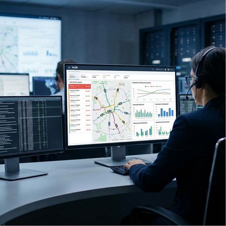 MYLE provides live monitoring for every trip in progress, enabling dispatchers, oversight teams, and contracting authorities to see: